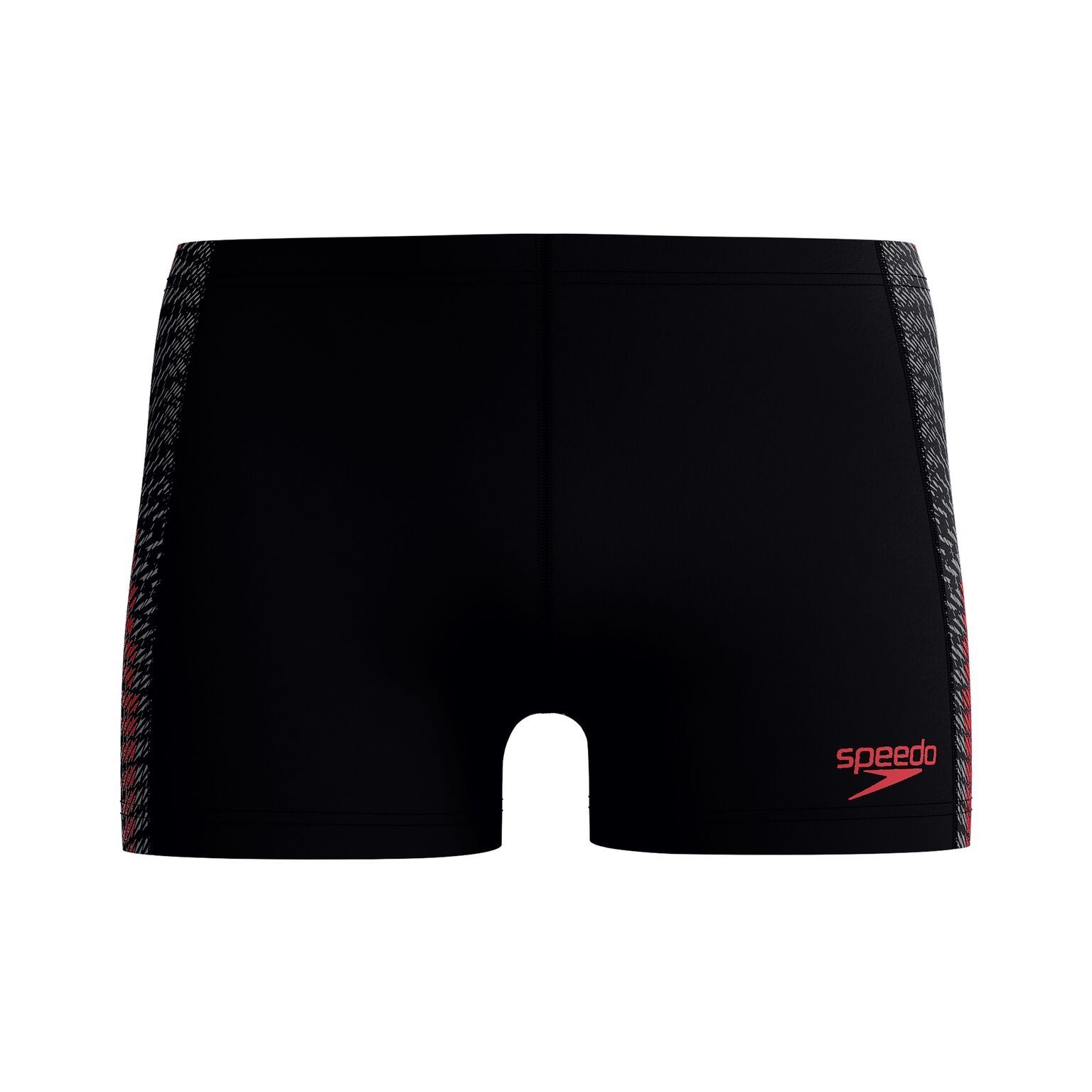 Speedo heren aquashort kleur zwart met gekleurde print grijs-rood aan zijkant been.